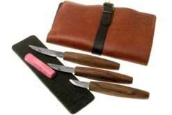 El BeaverCraft S19X Whittling Sloyd Knives Set es un juego de cuchillos para tallar madera de Sloyd con tres tamaños diferentes, y tres funciones distintas. El cuchillo grande es estupendo para retirar grandes trozos de madera. El cuchillo de tamaño medio es perfecto a la hora de definir la forma correcta del objeto que estás tallando. El cuchillo más pequeño es adecuado para el acabado final o para la aplicación de detalles. Este juego también contiene un asentador y un compuesto para asentar para asegurarse de que los cuchillos se mantengan afilados.