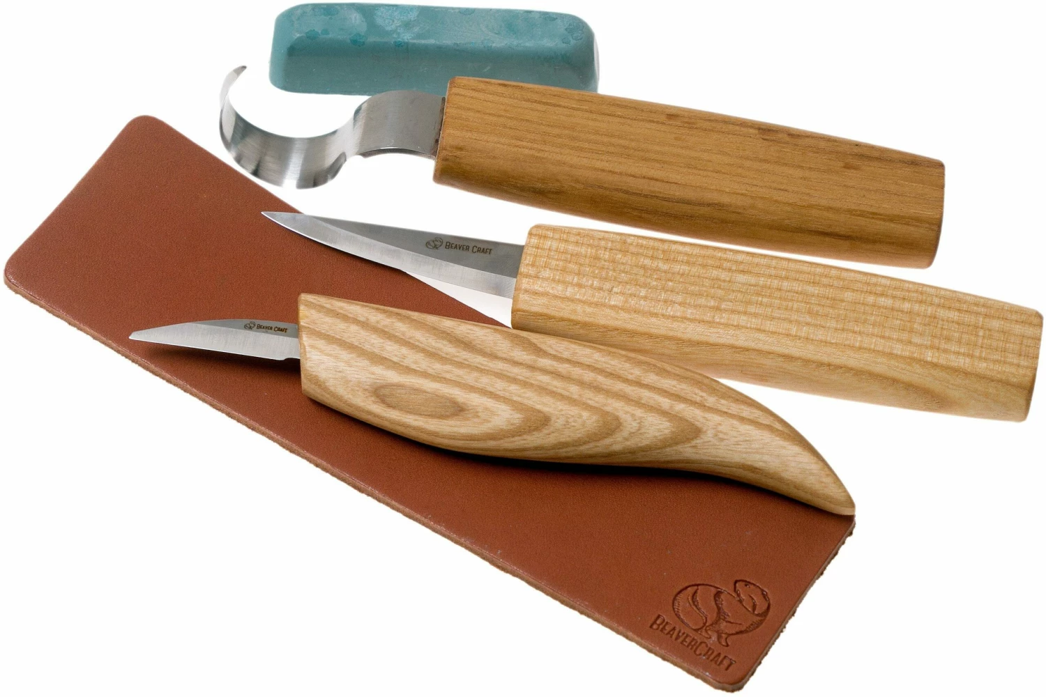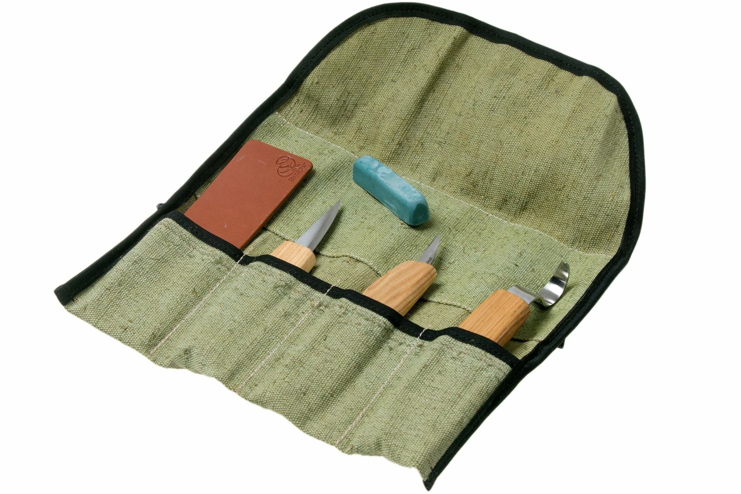 Este juego de tallado de cucharas BeaverCraft Extended S17 es un gran juego para cualquier tallador de madera. Contiene todo lo necesario para empezar a tallar cucharas. Un versátil cuchillo para tallar madera, un cuchillo para tallar madera para las tareas más detalladas, un cuchillo para vaciar (¡para diestros!) y un asentador. Todo bien guardado en un impresionante rollo de herramientas de lona.