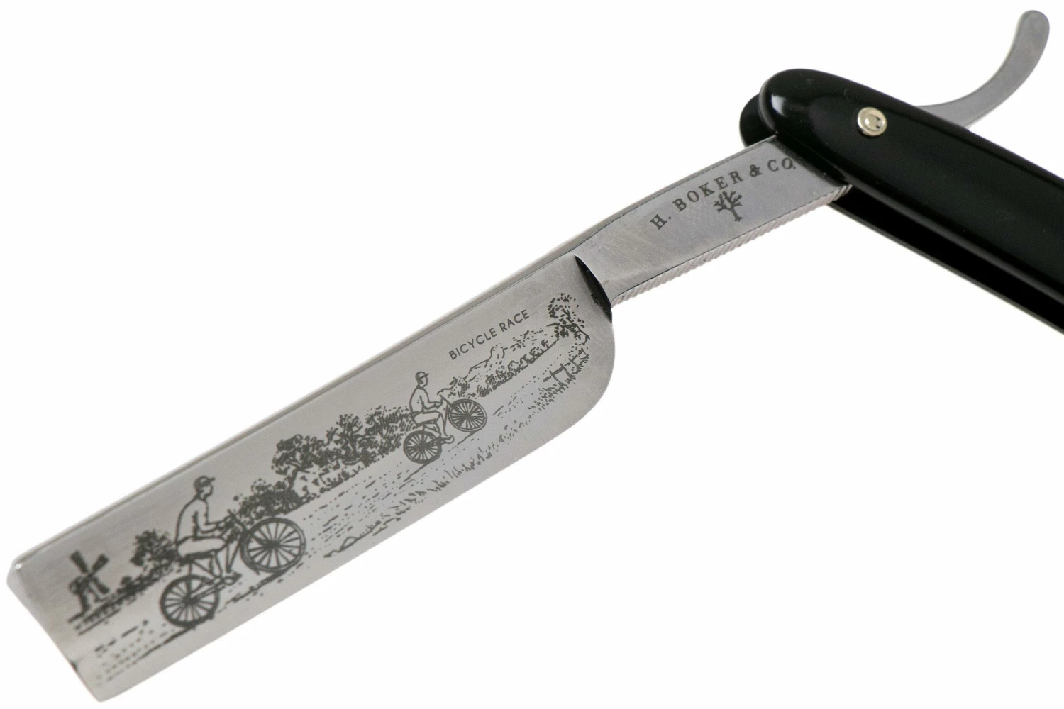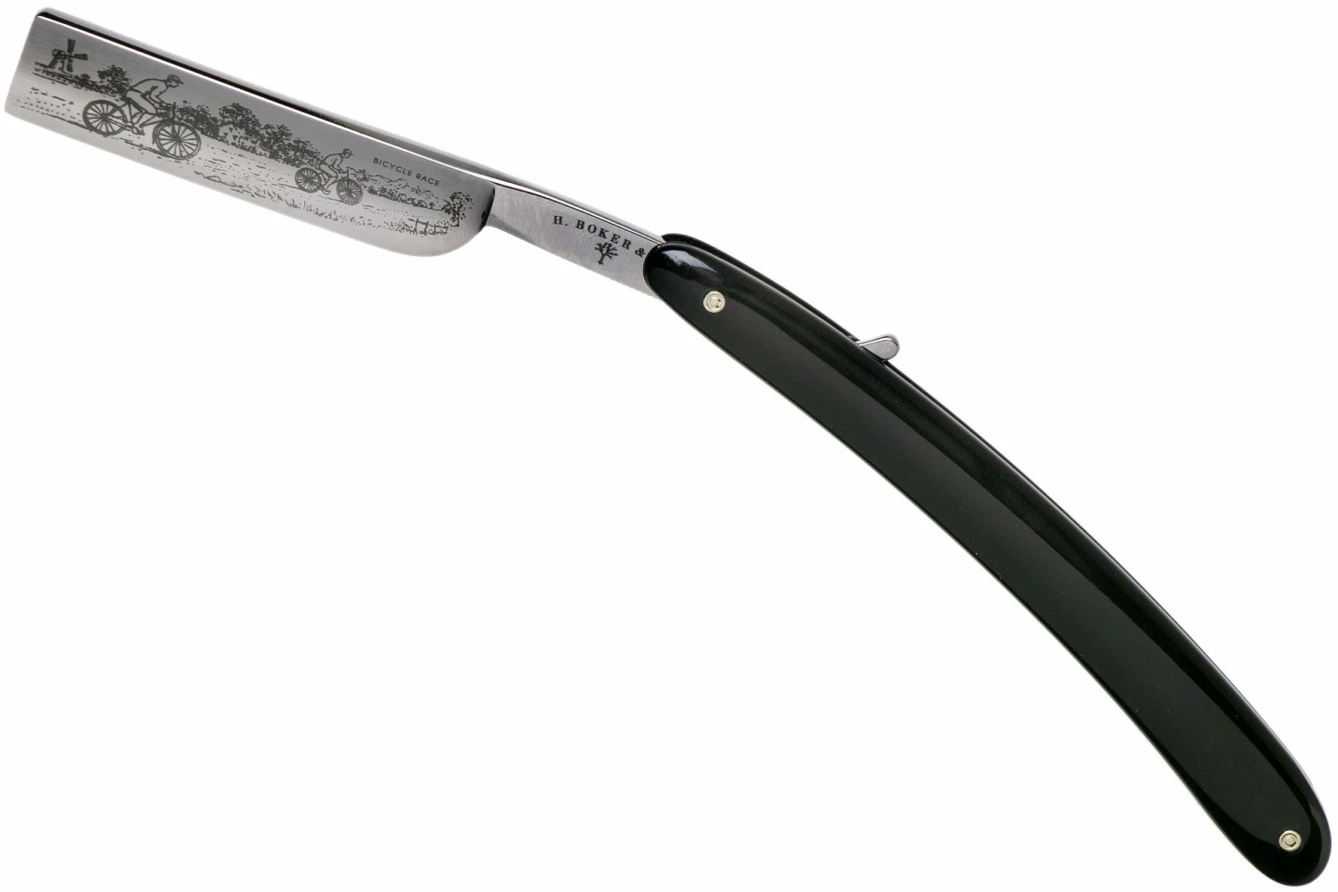La Böker Manufaktur Bicycle Race, Black Synthetic 140223 es una navaja de afeitar recta de alta calidad. La altura de la hoja es únicamente de 5/8″. Böker lleva más de cien años fabricando navajas de afeitar rectas y goza de una excelente reputación en este campo. Esta navaja de afeitar se fabrica en el taller de Böker en Solingen, Alemania.