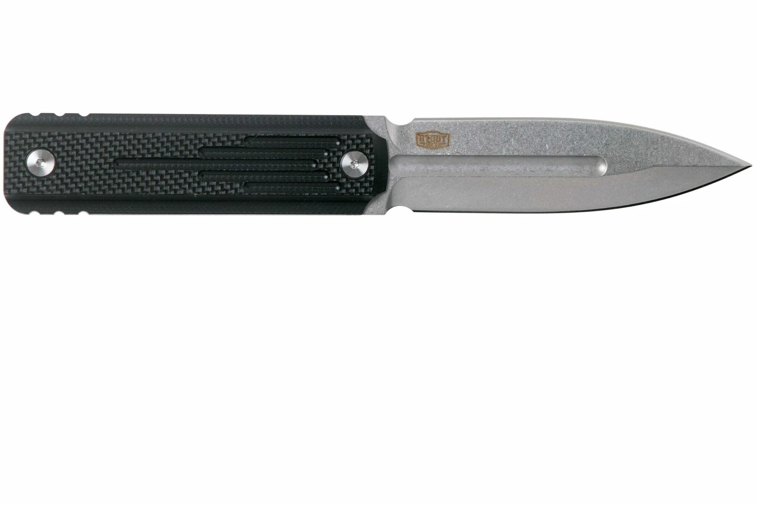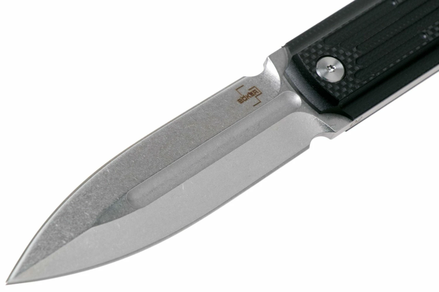El Böker Plus Omerta 02BO032 es un excelente cuchillo daga, diseñado por Jason Stout. Un cuchillo moderno, completamente afilado de forma simétrica. Es decir, tiene dos filos cortantes. La hoja está hecha de acero D2 sólido. Un tipo de acero para herramientas que es resistente y conserva bien su afilado.