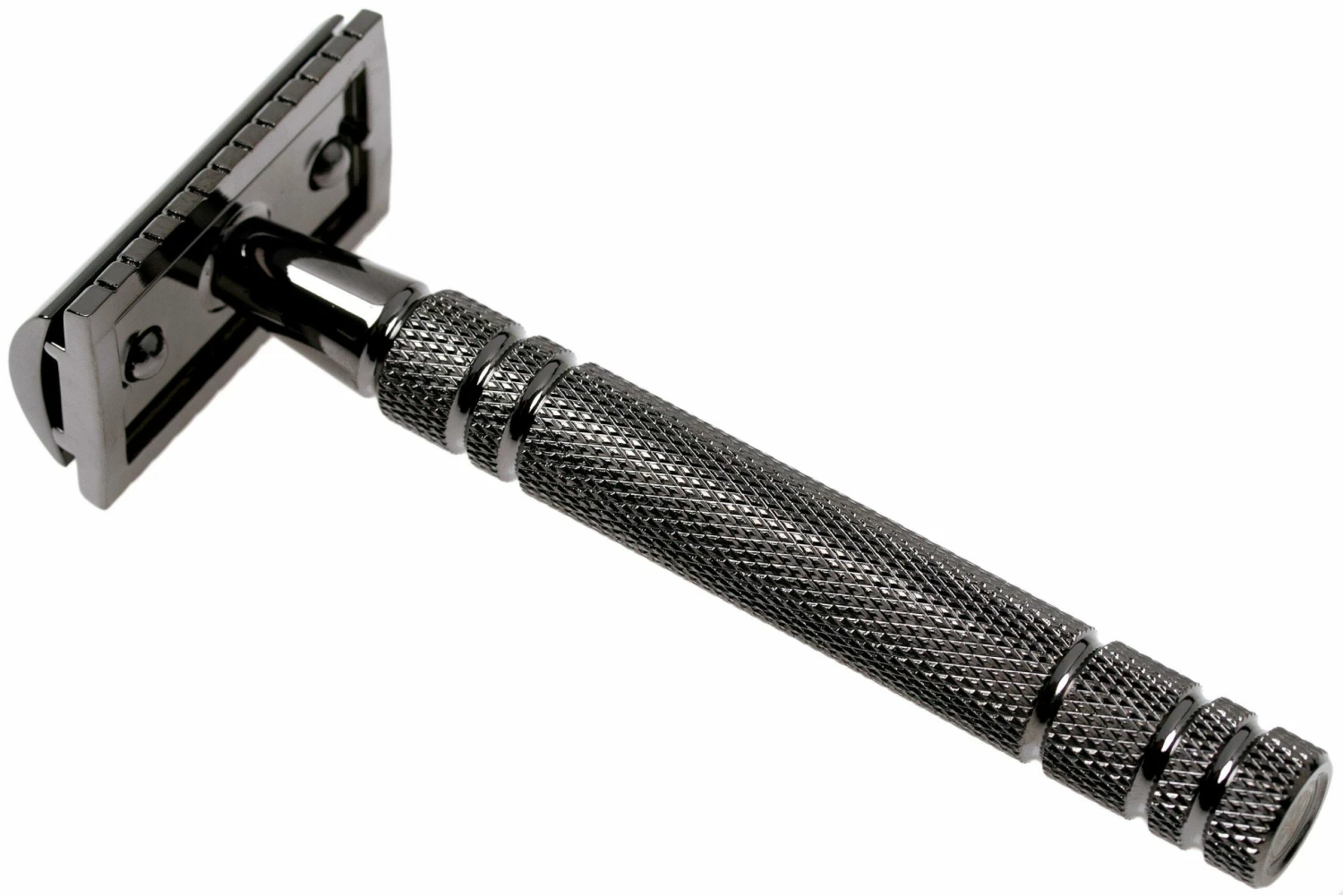 Esta Maquinilla de afeitar Böker Safety Razor Boraso Gunmetal Grey es la versión grande de la clásica maquinilla de afeitar de seguridad hecha de metal cromado. Con esta maquinilla de afeitar Böker Safety Razor de la vieja escuela puedes tardar un poco más en hacer el trabajo, pero los resultados son mejores que cuando utilizas una maquinilla de afeitar eléctrica.