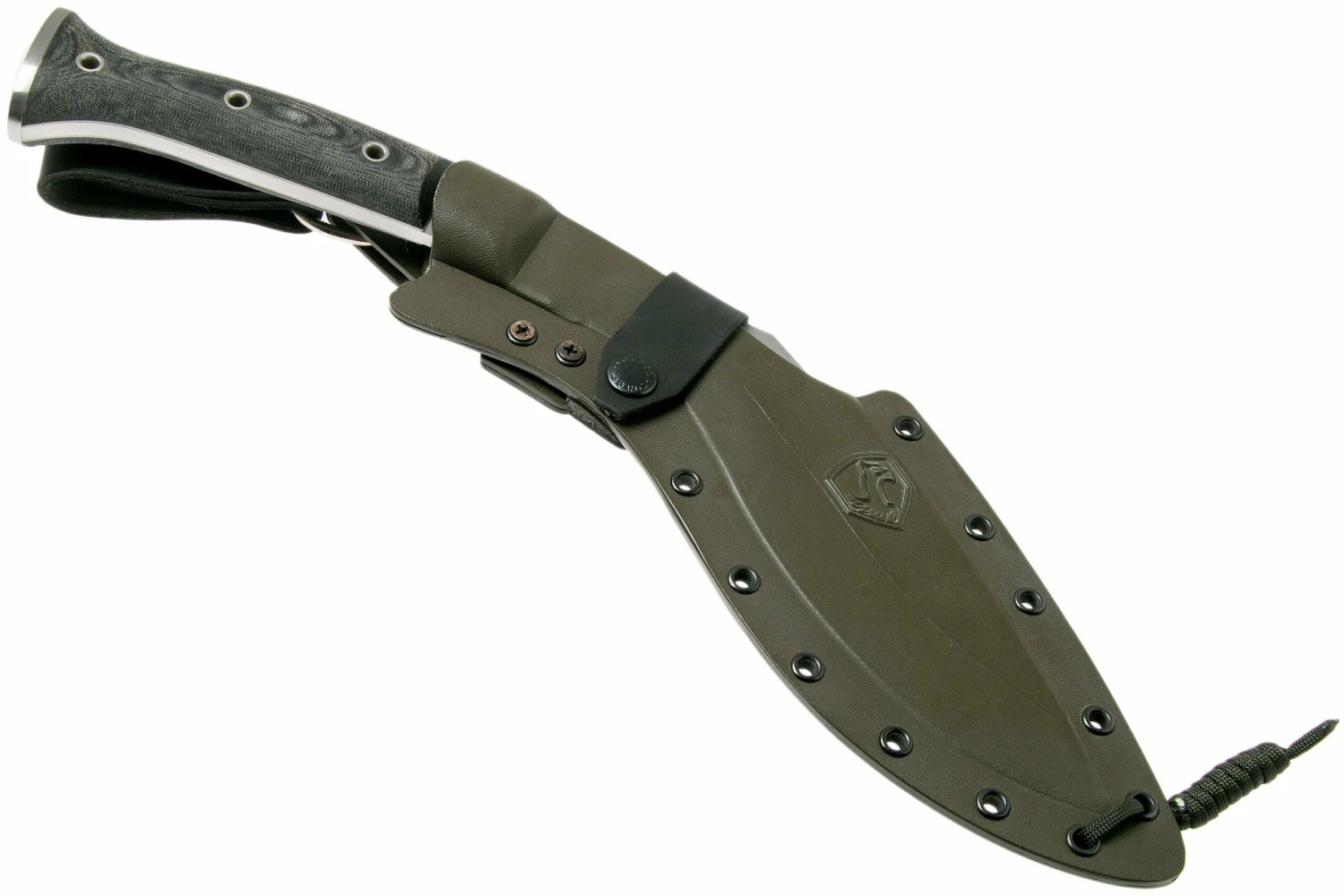 El Condor K-TAC Kukri Knife 1812-10HC es un potente machete al estilo clásico del kukri. Tiene un aspecto resistente y es adecuado para tareas pesadas. Originalmente, el kukri era un cuchillo utilizado por los admirados y temidos gurkhas de Nepal. Estos feroces guerreros utilizaban sus kukris día tras día. Debido a la forma de la hoja, una gran parte del peso se sitúa en la parte delantera. Por lo tanto, es excelente para picar.