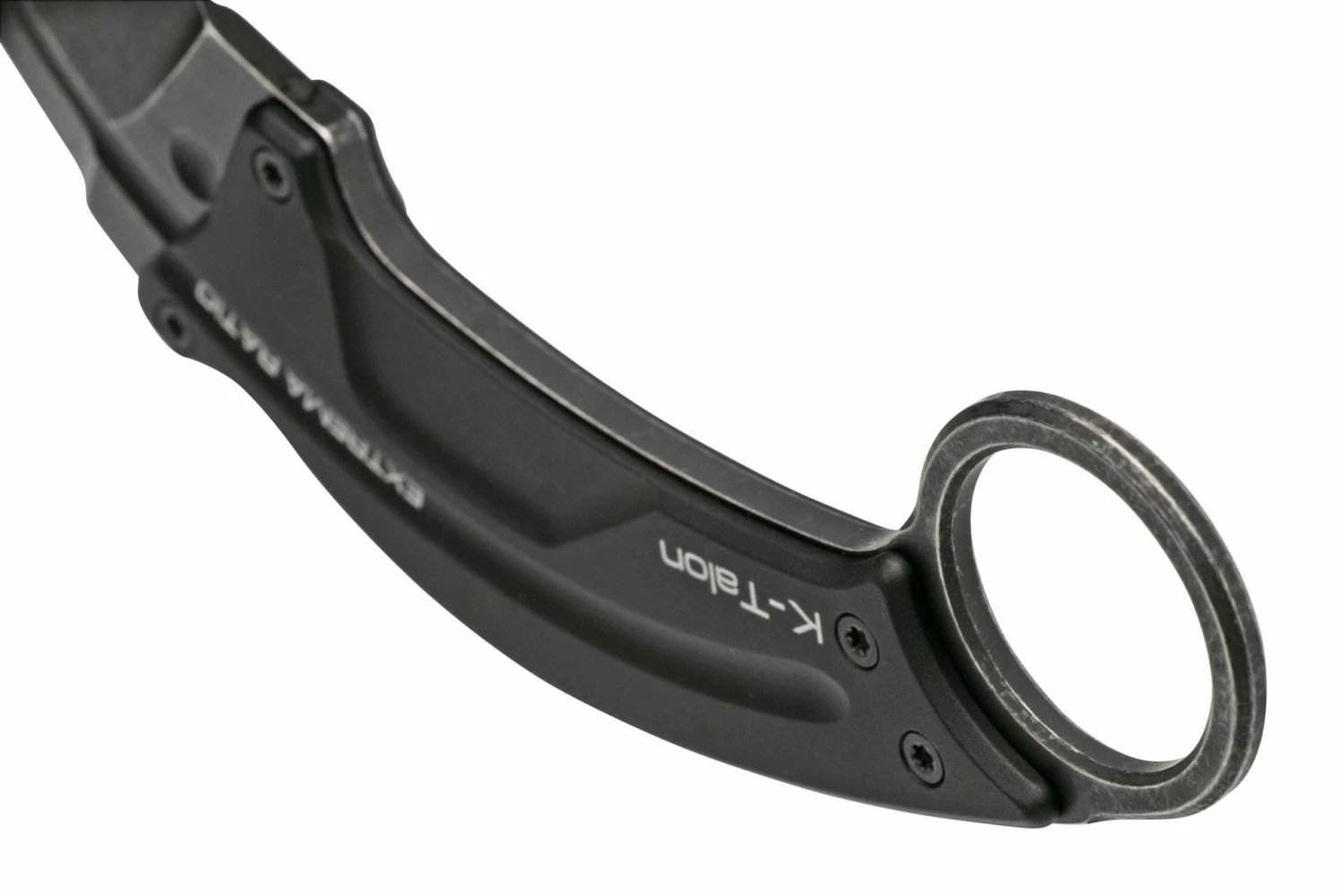 El Extrema Ratio K-Talon es un cuchillo de karambit compacto. El cuchillo es increíblemente robusto gracias a su construcción full-tang. Esto significa que la hoja y el anillo están hechos de una sola pieza de acero, en la que se montan las cachas.