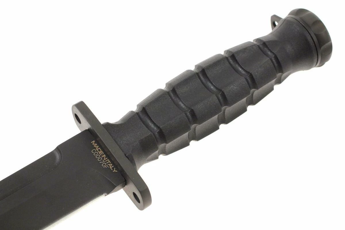 Robusta daga táctica fabricada con acero Bohler N690 (58HRC). Longitud de la hoja 18 cm. Mango de nylon duradero. Diseño basado en el legendario MARK 2, uno de los cuchillos más populares utilizados durante la Segunda Guerra Mundial. Incluye una robusta funda negra que cumple con los requisitos militares MOLLE.