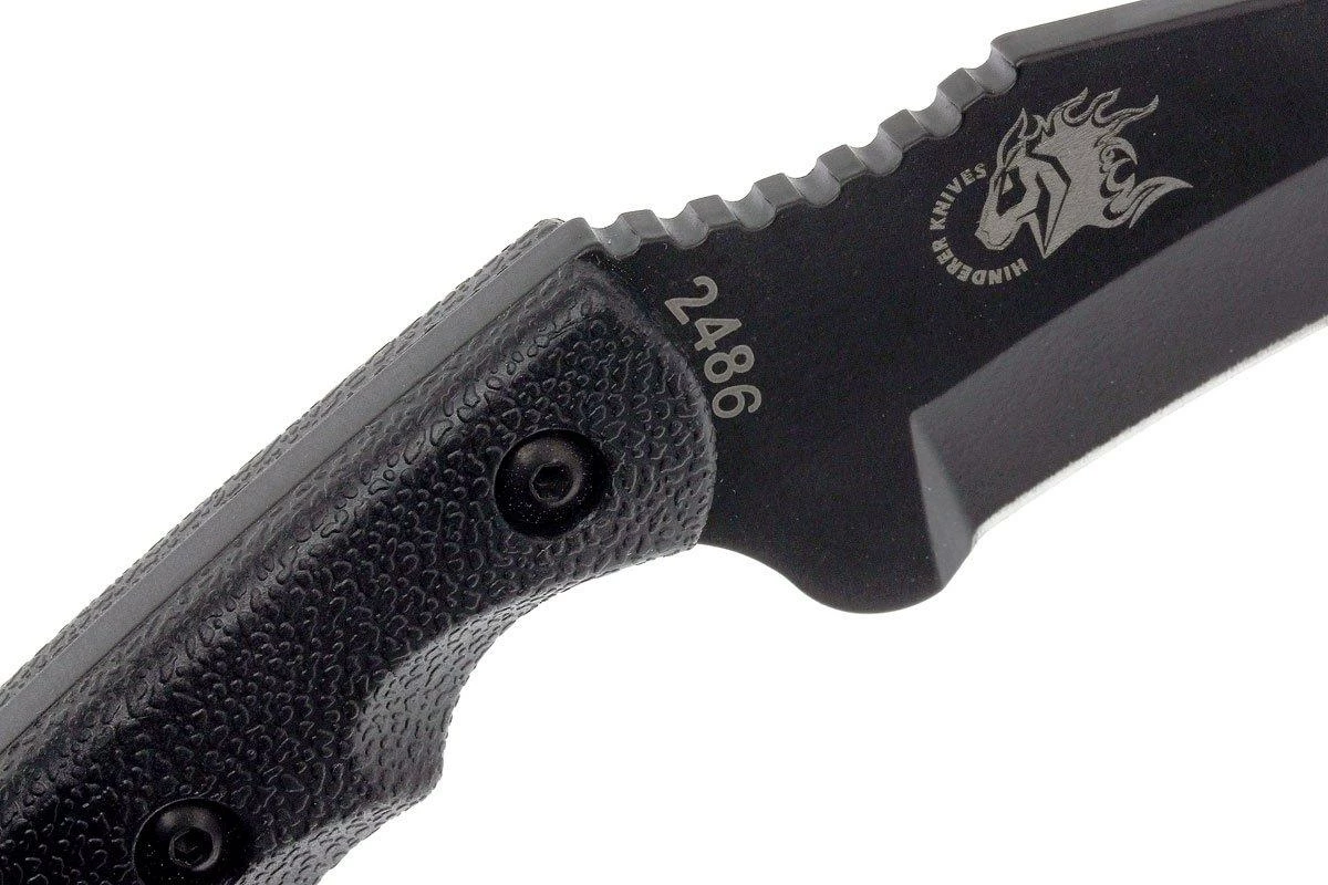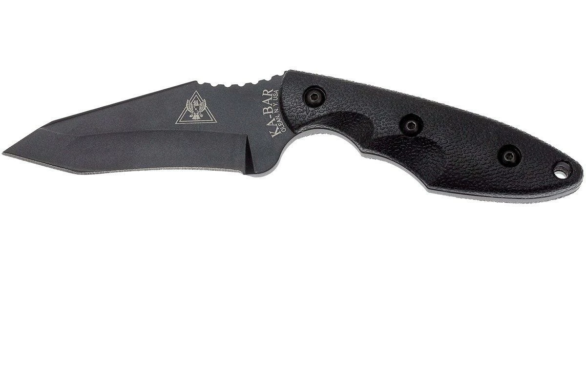 El KA-BAR Hell Fire es el resultado de la cooperación entre el Tactical Defence Institute (TDI) y el diseñador de cuchillos Rick Hinderer. El cuchillo es muy sólido gracias al grosor de su hoja de 4,8 mm. El mango parece pequeño con sus 10 cm, pero aún así ofrece suficiente agarre. La hoja está hecha de acero al carbono 1095. Un tipo de acero popular que no es inoxidable. Como tal, hay que mantenerlo.