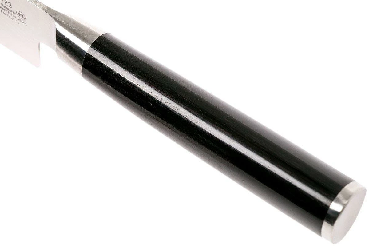 La colección Shun Classic está compuesta por preciosos cuchillos de cocina con acero de damasco de 32 capas. El núcleo VG-MAX asegura que el cuchillo es increíble de usar. Los mangos son de madera laminada de Pakka y tienen una forma asimétrica. Esta colección de cuchillos es una de las más extensas del mundo. Por su aspecto y por sus excelentes propiedades de corte, este cuchillo es un placer absoluto para la vista e increíble de usar.