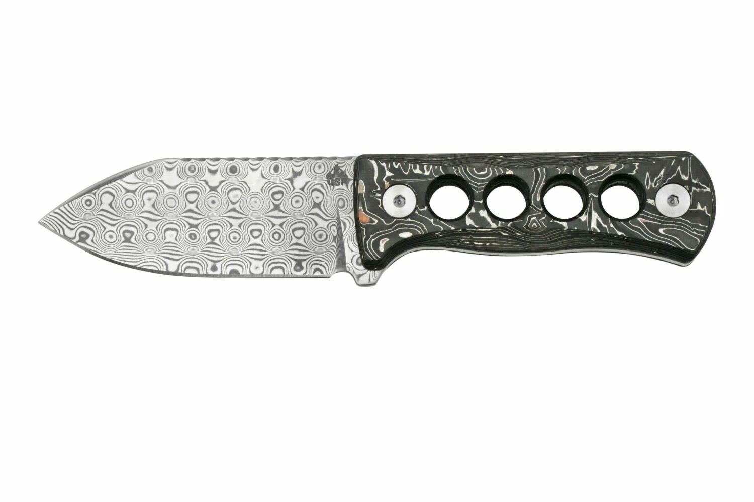 QSP Knife Canary QS141-E Damascus, Aluminium Foil Carbon Fibre, Cuchillo De Cuello