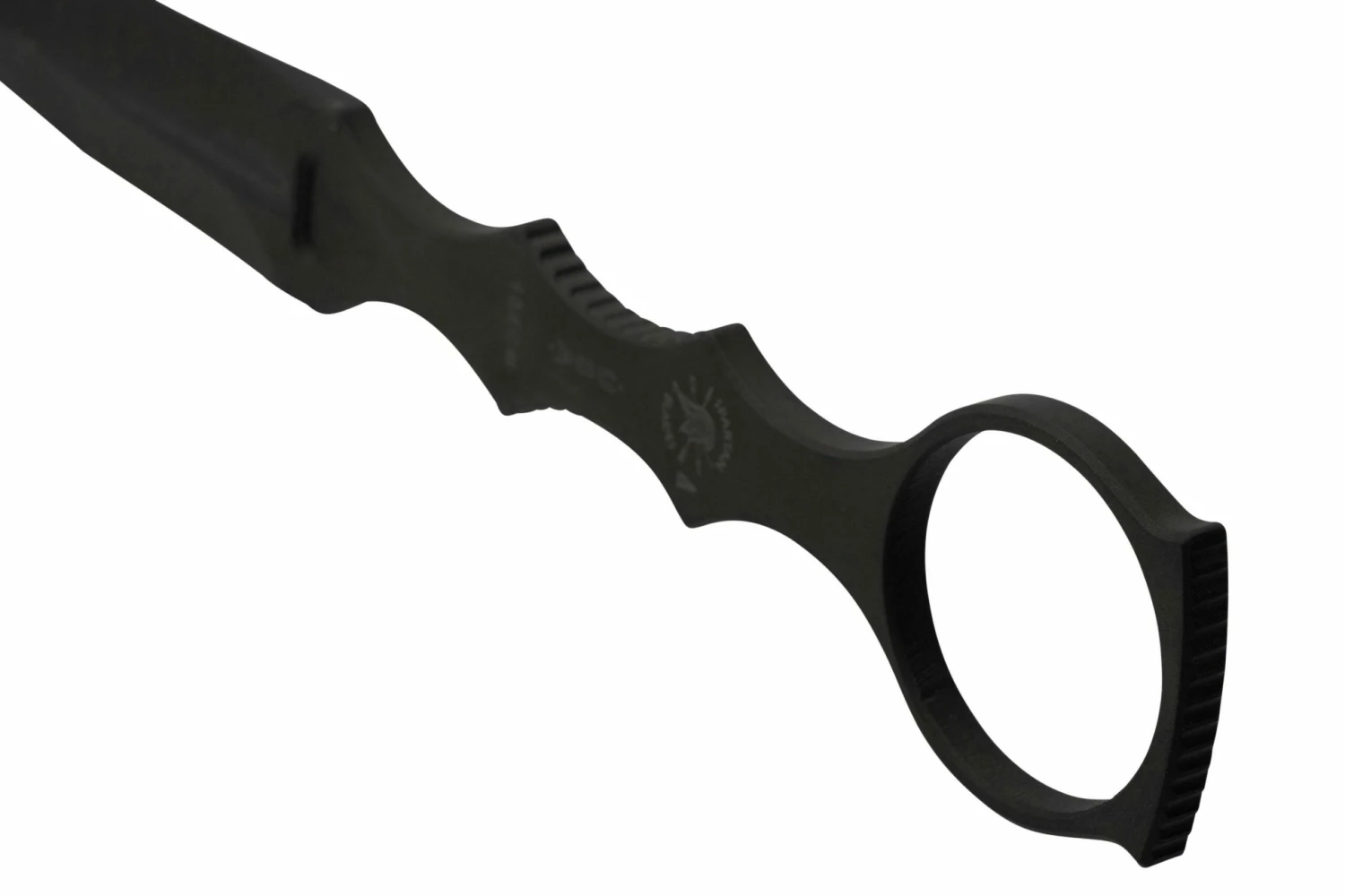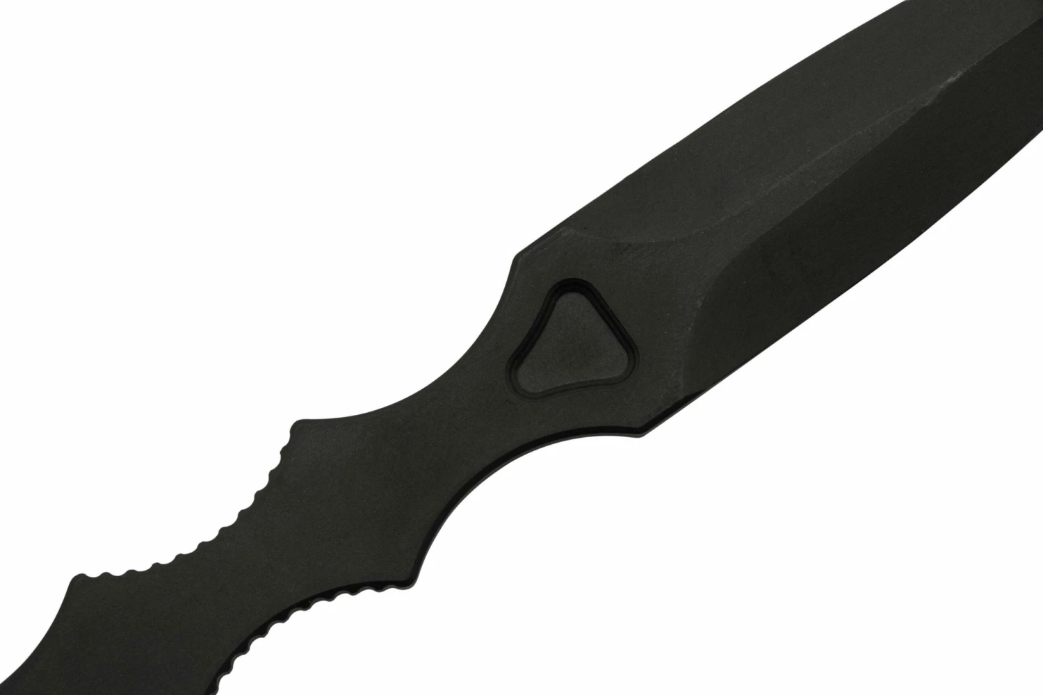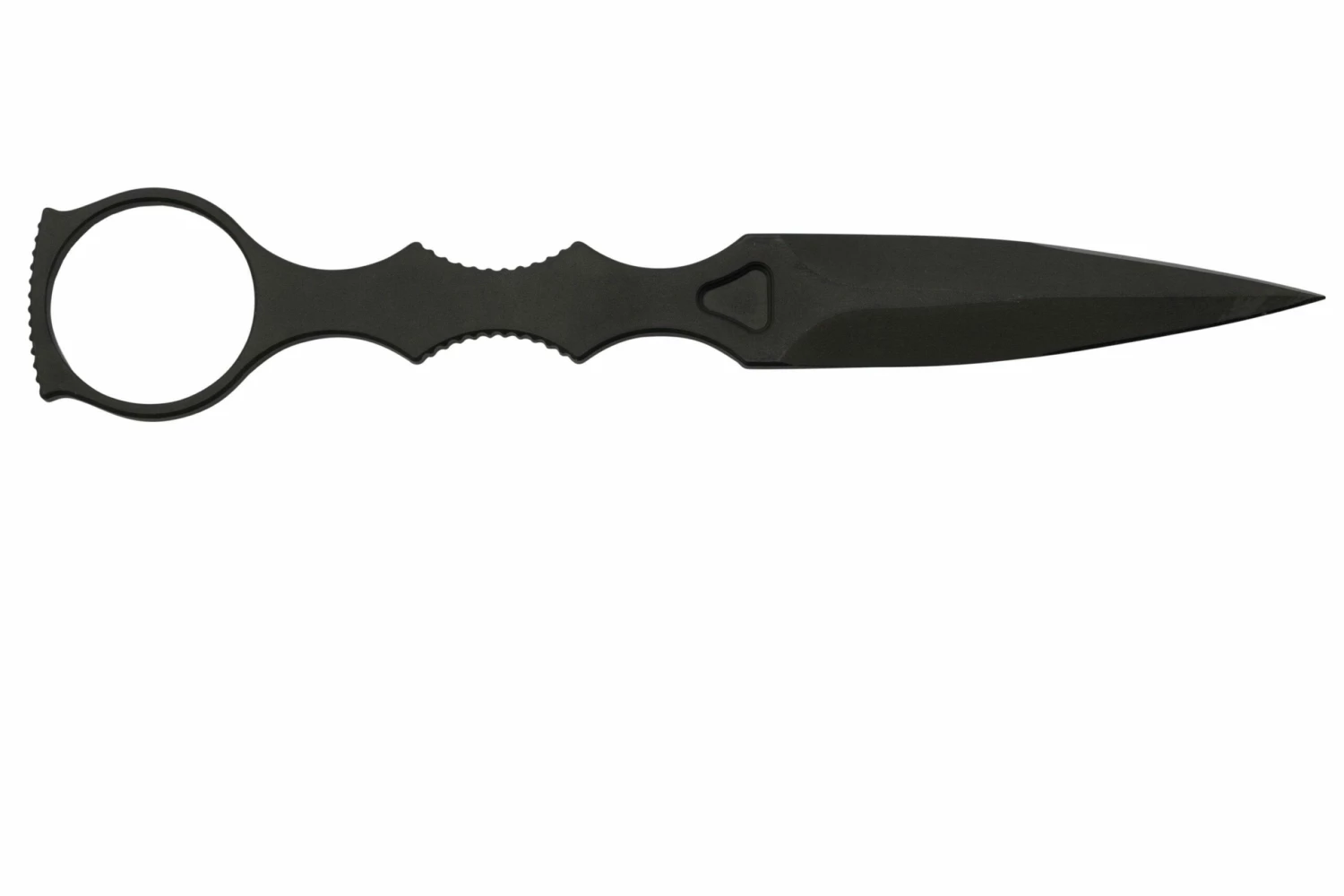 El Spartan Blades CQB Tool Black es un cuchillo táctico ligero hecho para Close Quarters Battle. Esta daga se sujeta fácilmente a un cordón alrededor del cuello o del equipo gracias a su funda de kydex. La funda es compatible con MOLLE y PALS, por lo que también se puede sujetar al chaleco, al cinturón o a la mochila. La anilla en el extremo del mango permite sacar el cuchillo rápidamente.