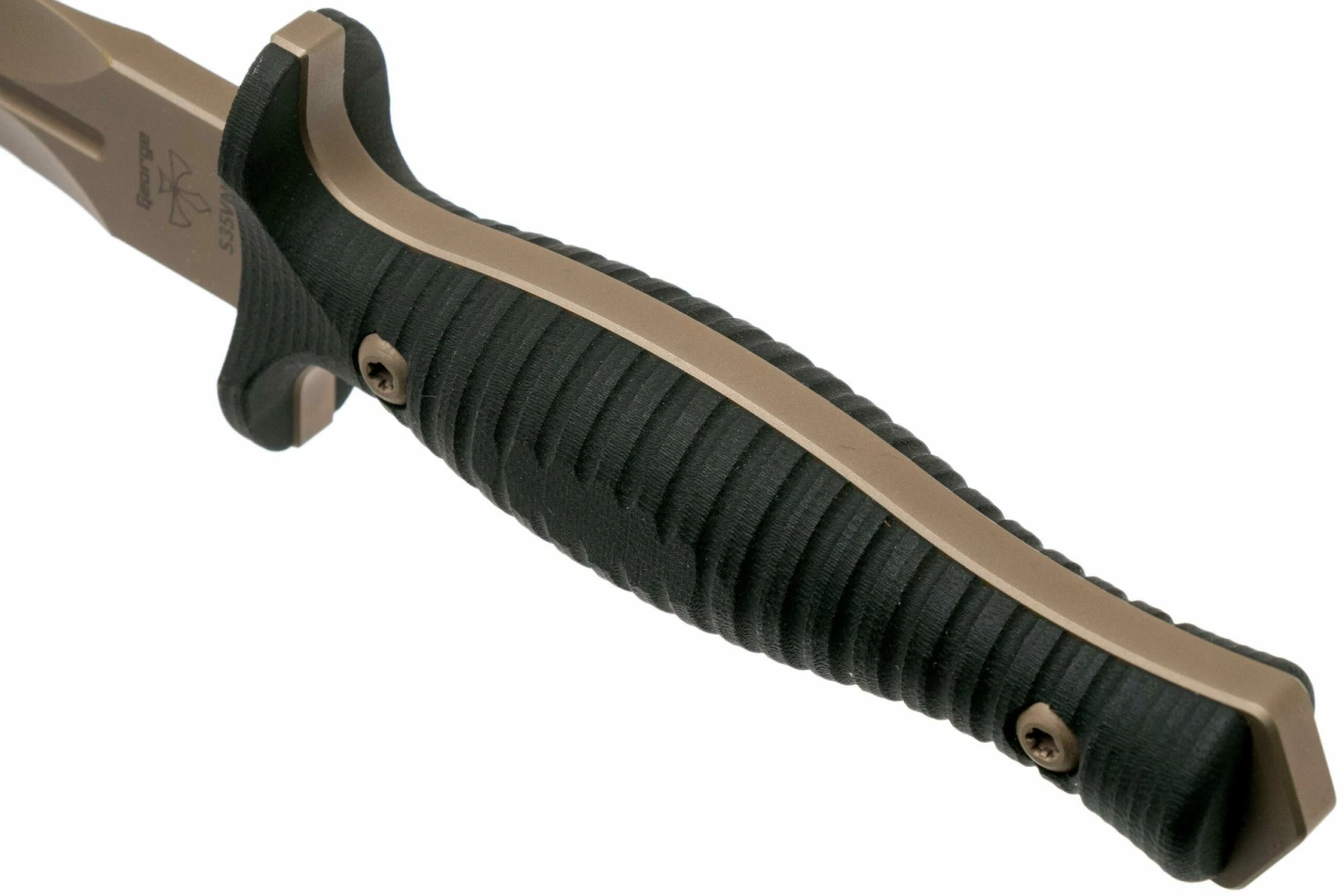 La Espartan Blades George V14 Dagger es una daga resistente, diseñada por Les George. Los entusiastas notarán de inmediato que George se inspiró en las famosas dagas Fairbairn-Sykes y Applegate que se utilizaron en muchas guerras del siglo anterior. Esta daga tiene una hoja ligeramente similar e incluso el mango puede recordar a esos cuchillos.