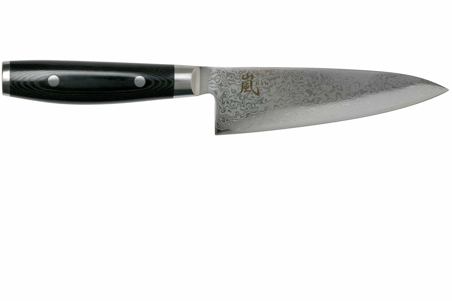 El cuchillo de chef Yaxell Ran de 15,5 cm es un pequeño y elegante cuchillo de cocina japonés. Debido a su pequeña hoja, el cuchillo es muy fácil de usar y ligero. Como tal, tiene mucho control al cortar verduras, frutas, carne o hierbas. Es ideal si cree que un cuchillo de chef normal es demasiado grande.