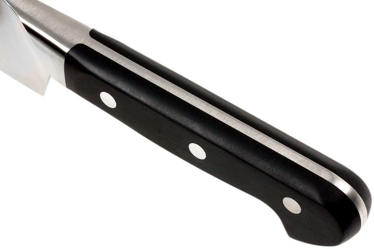 Este cuchillo de chef Zwilling Pro de 20 cm cortará fácilmente verduras, carne y pescado. También es ideal para picar hierbas, triturar granos de pimienta y pelar dientes de ajo. Por ello, un cuchillo de chef te resultará muy útil a la hora de preparar cualquier tipo de plato.