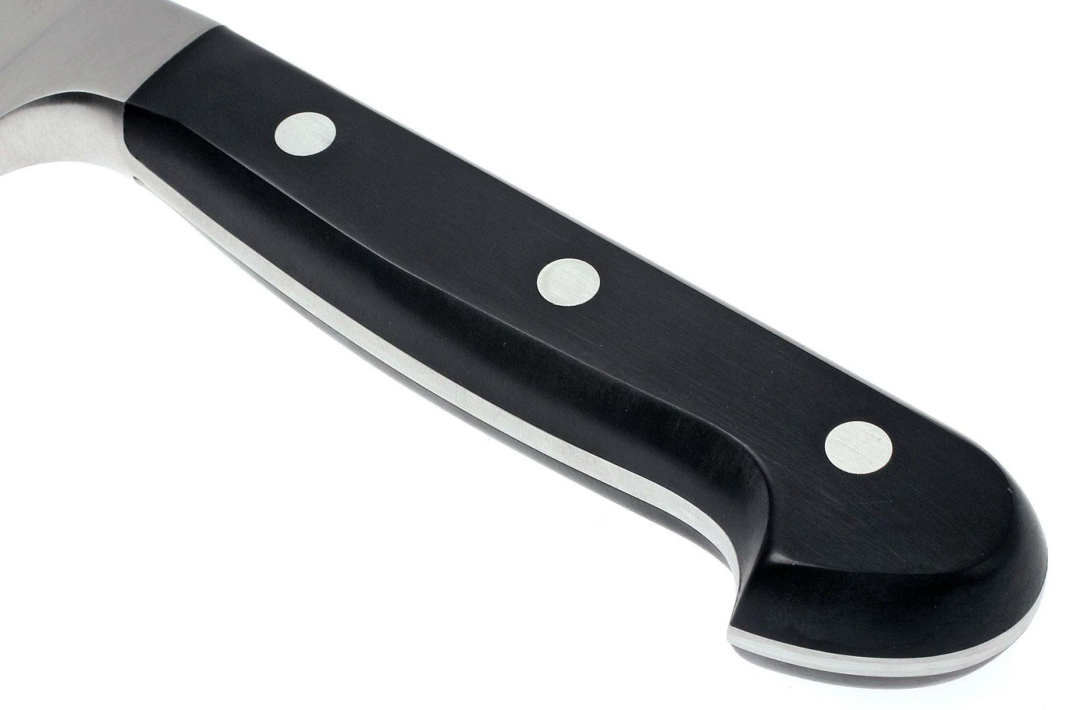 Este cuchillo de chef Zwilling Professional ‘S’ es, tanto en términos de diseño como de facilidad de uso, un verdadero clásico. Tiene el aspecto de un cuchillo que la mayoría considerará un cuchillo de cocina «real». Pero el afilado que caracteriza a este cuchillo será algo que mucha gente nunca ha experimentado antes.